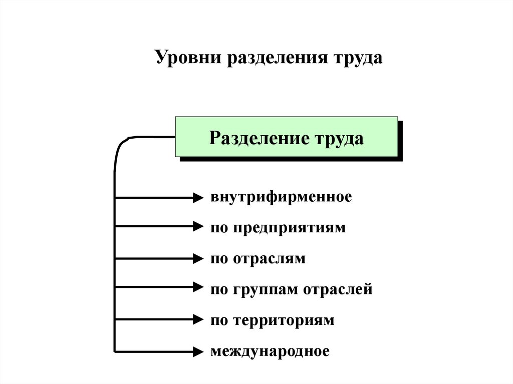 Разделение труда - это обособлениеего видов в форме специализации деятельности