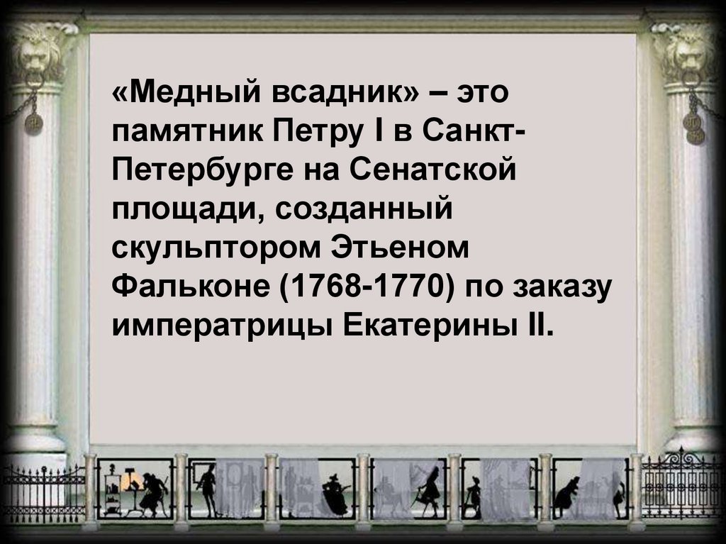 «Медный всадник» – этопамятник Петру I в СанктПетербурге на Сенатской