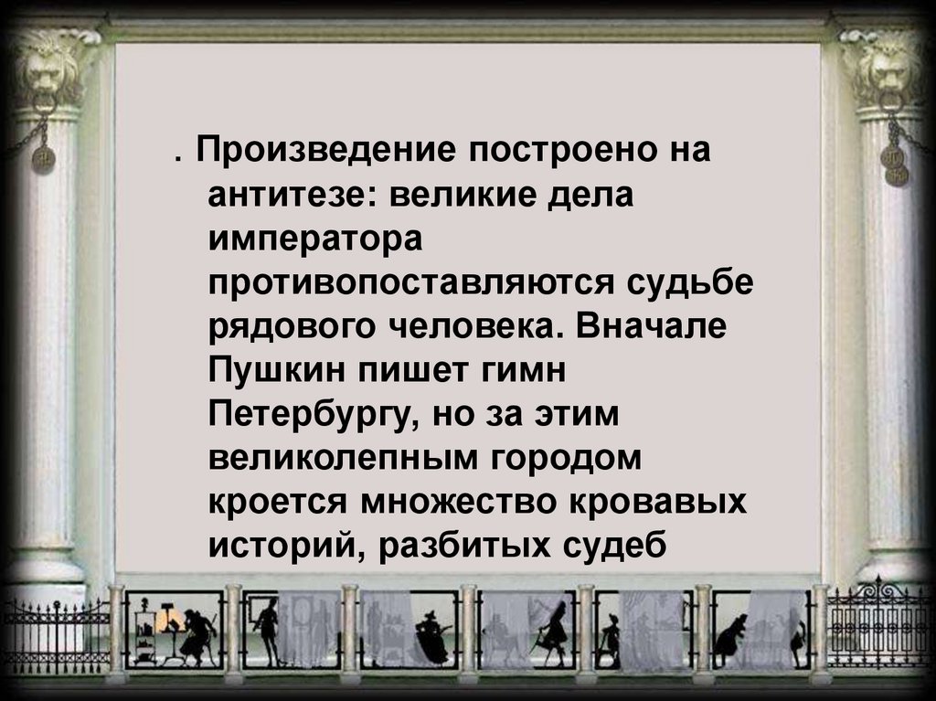 . Произведение построено наантитезе: великие дела