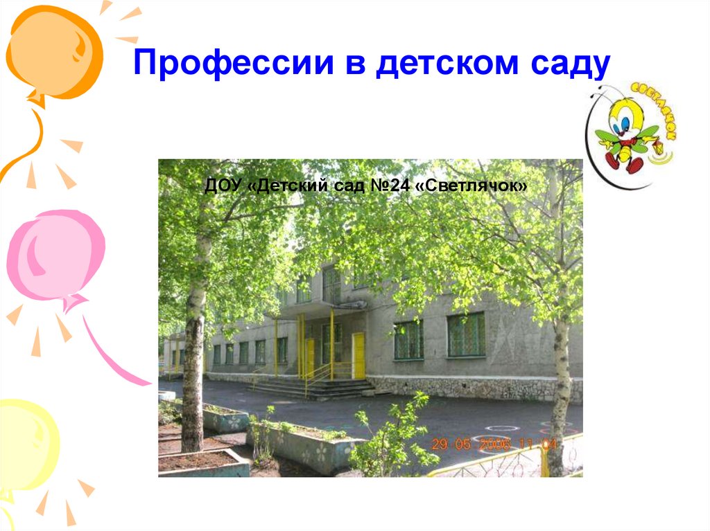 Профессии в детском садуДОУ «Детский сад №24 «Светлячок»