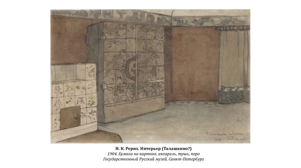 Н. К. Рерих. Интерьер (Талашкино?)1904. Бумага на картоне, акварель, тушь, перо