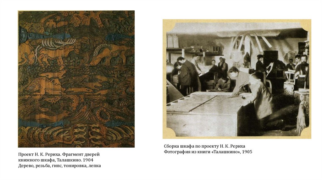 Проект Н. К. Рериха. Фрагмент дверейкнижного шкафа, Талашкино. 1904
