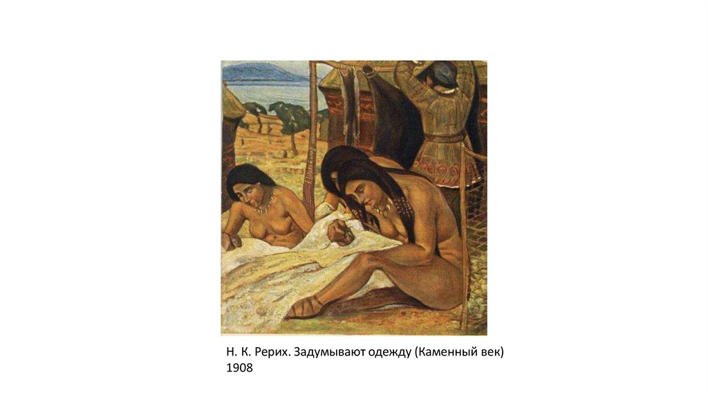 Н. К. Рерих. Задумывают одежду (Каменный век)1908