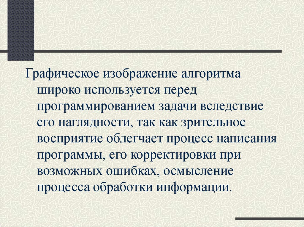 Графическое изображение алгоритмашироко используется перед