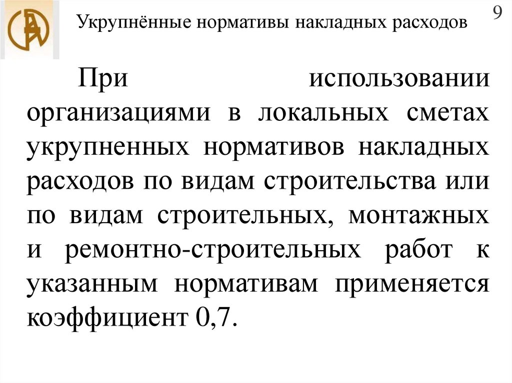 Укрупнённые нормативы накладных расходовПри