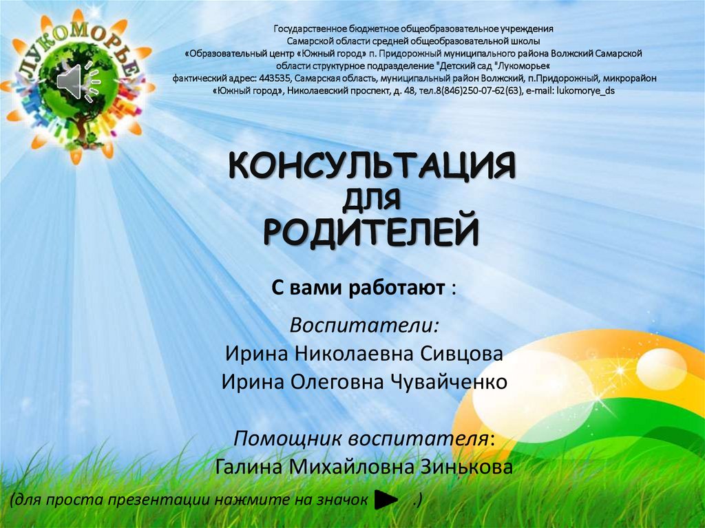 «Южный город», Николаевский проспект, д. 48, тел.8(846)250-07-62(63), e-mail: lukomorye_ds
