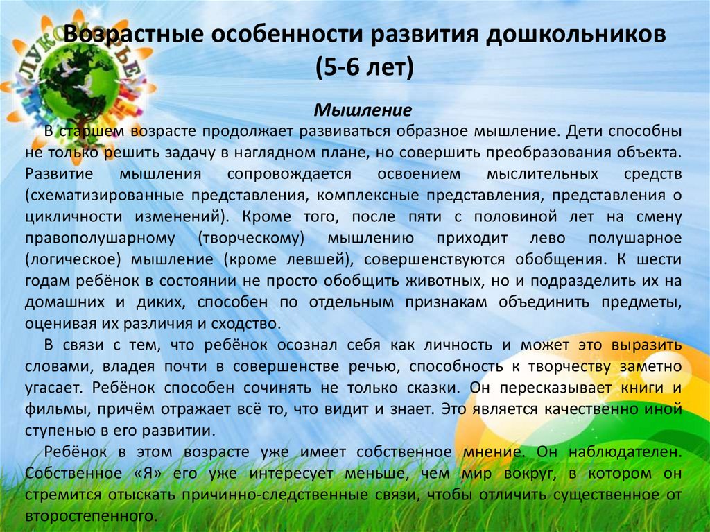 В старшем возрасте продолжает развиваться образное мышление. Дети способны