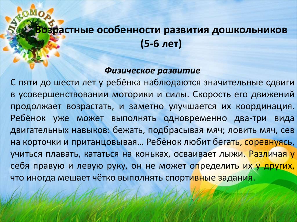 (логическое) мышление (кроме левшей), совершенствуются обобщения. К шести
