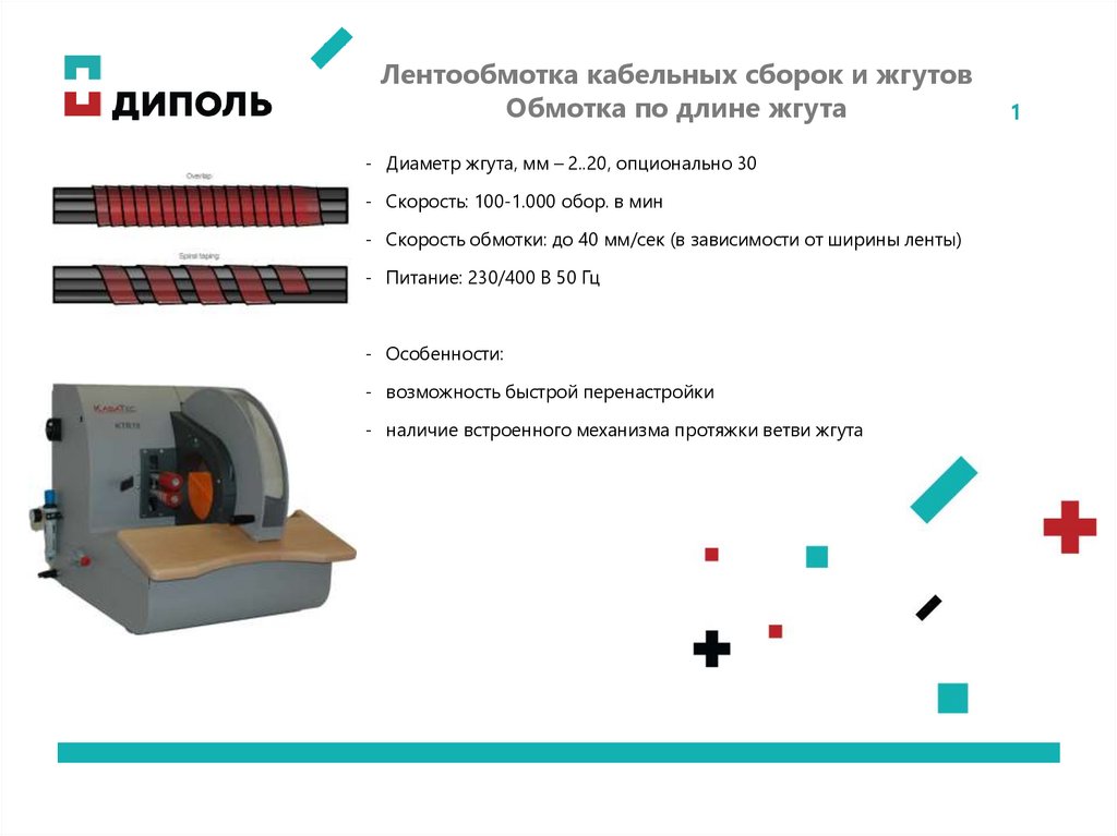 - Скорость обмотки: до 40 мм/сек (в зависимости от ширины ленты)