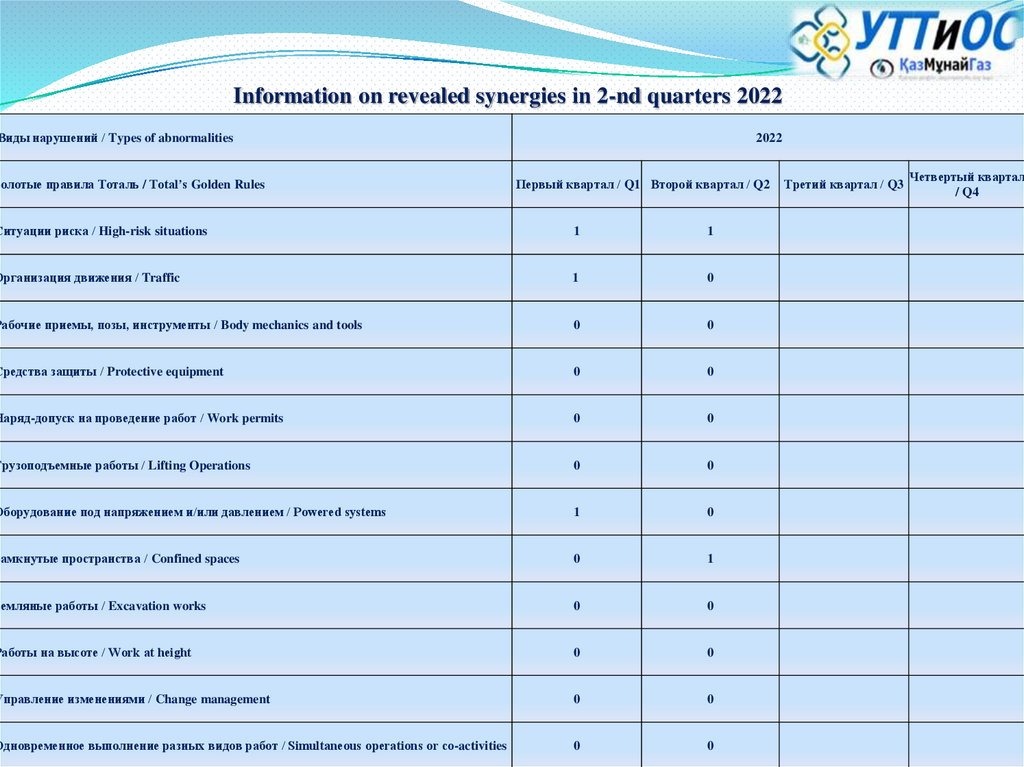 Information on revealed synergies in 2-nd quarters 2022Виды нарушений / Types of abnormalities