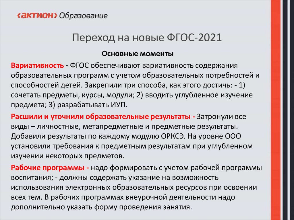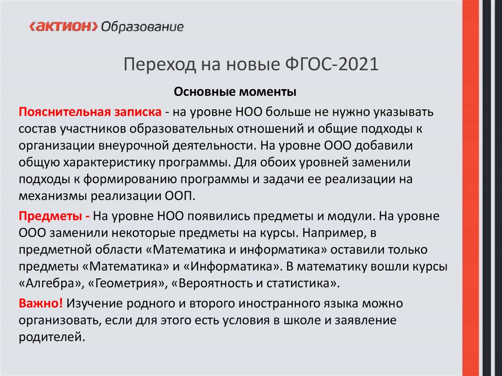ФГОС ООО. В него добавили вариации предметов. Например, для