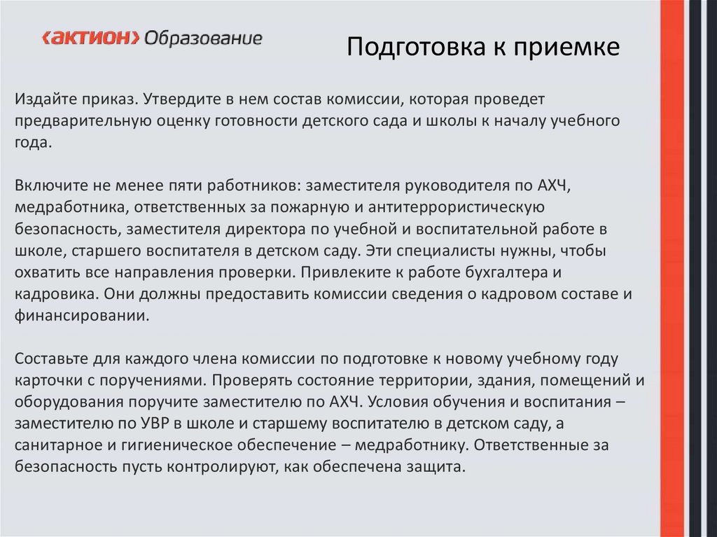 Подготовка к приемкеИздайте приказ. Утвердите в нем состав комиссии, которая проведет