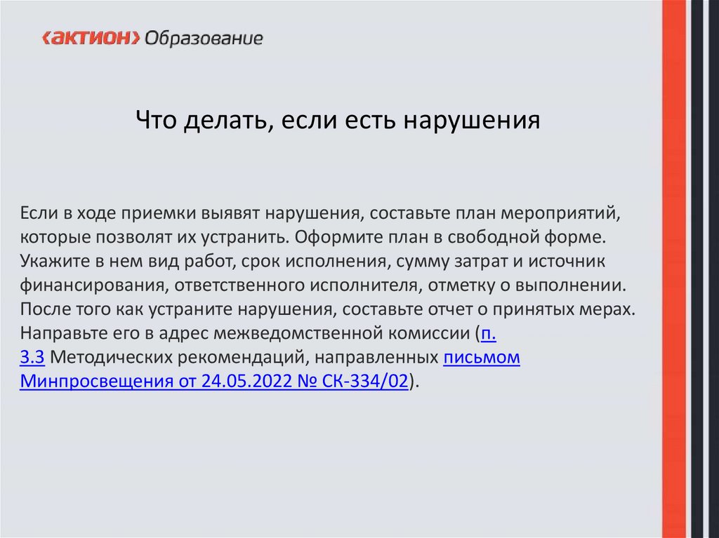 Что делать, если есть нарушенияЕсли в ходе приемки выявят нарушения, составьте план мероприятий,