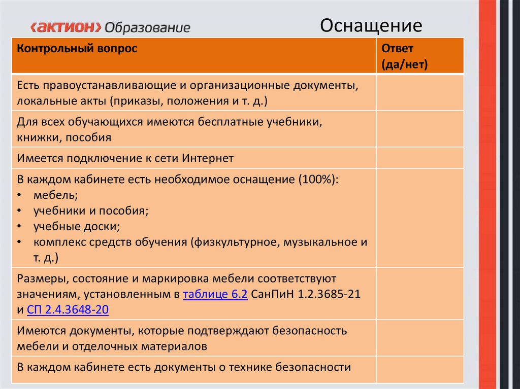 оборудования поручите заместителю по АХЧ. Условия обучения и воспитания –