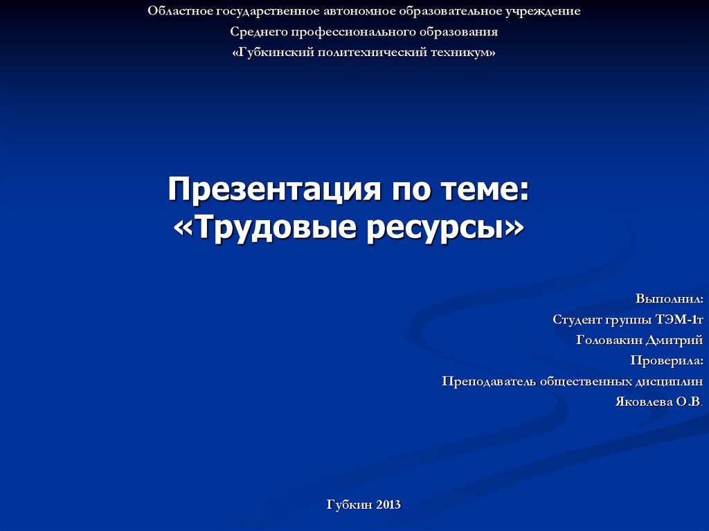 1. Презентация по теме: «Трудовые ресурсы»