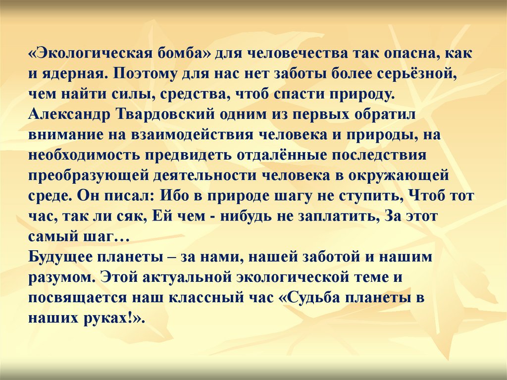 посвящается наш классный час «Судьба планеты в