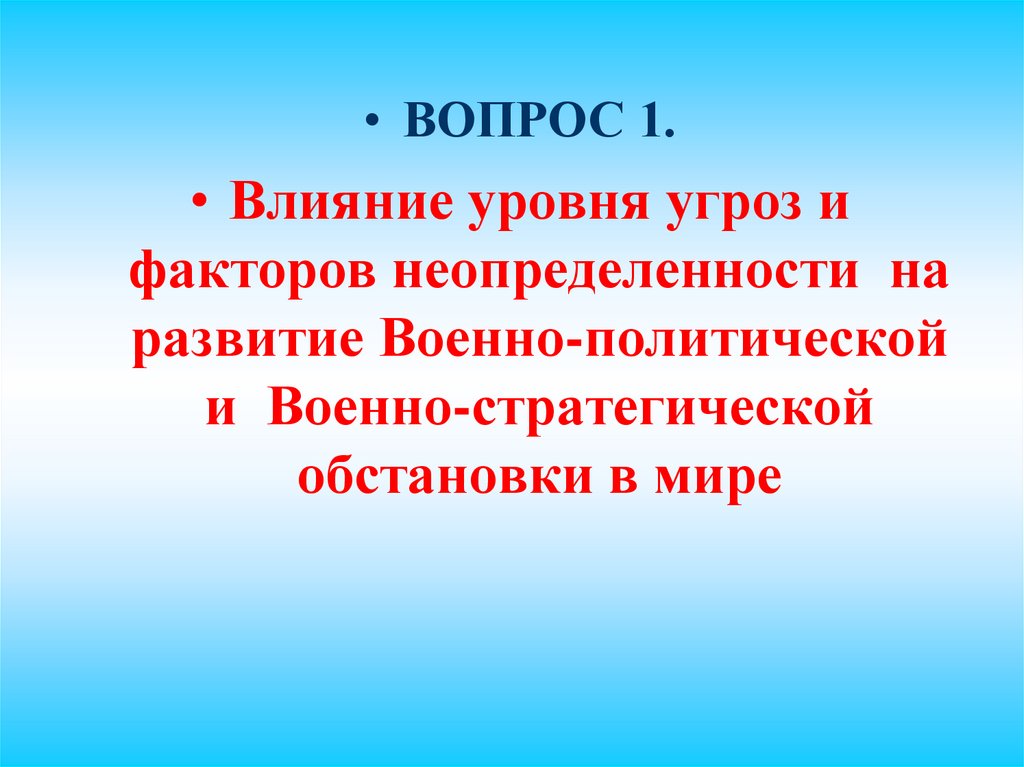 • ВОПРОС 1.• Влияние уровня угроз и