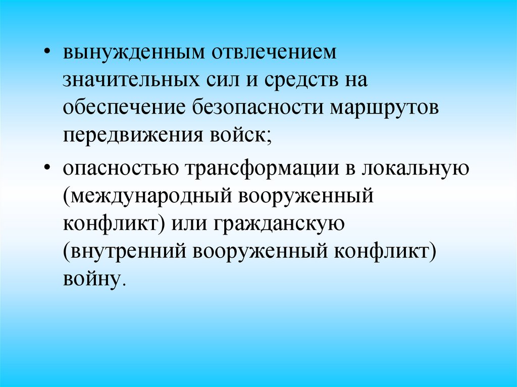 • вынужденным отвлечениемзначительных сил и средств на