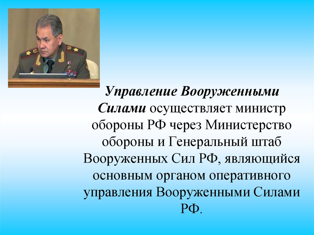 Управление ВооруженнымиСилами осуществляет министр