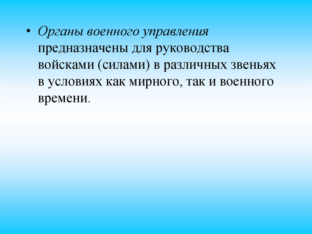 • Органы военного управленияпредназначены для руководства