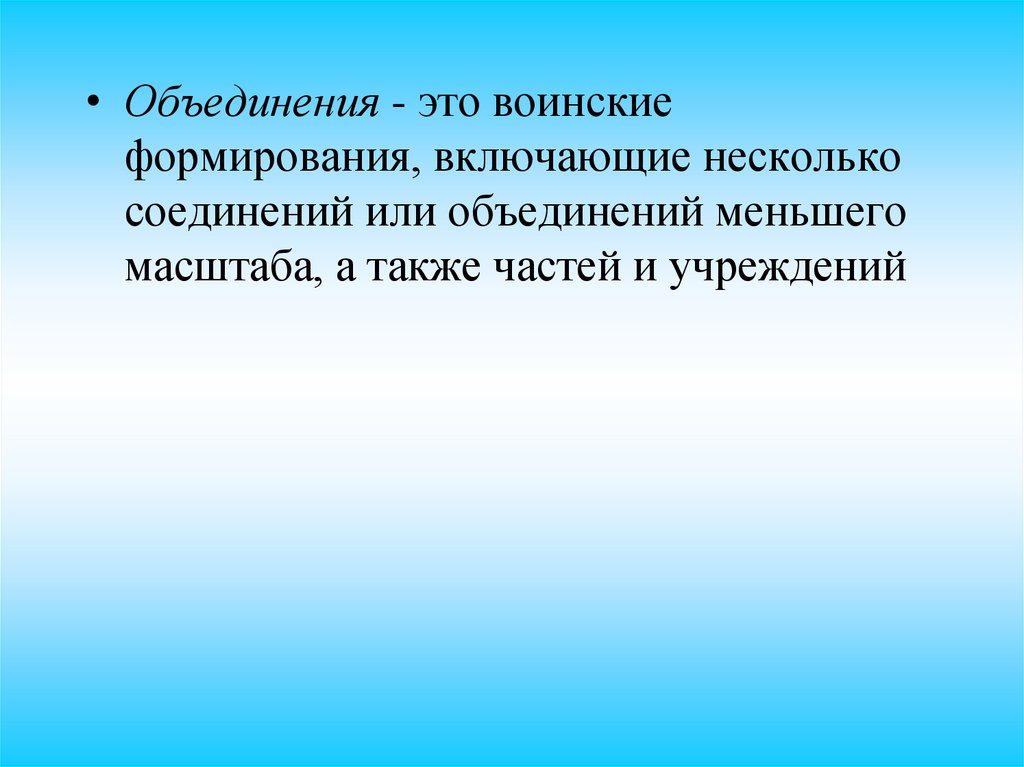 • Объединения - это воинскиеформирования, включающие несколько