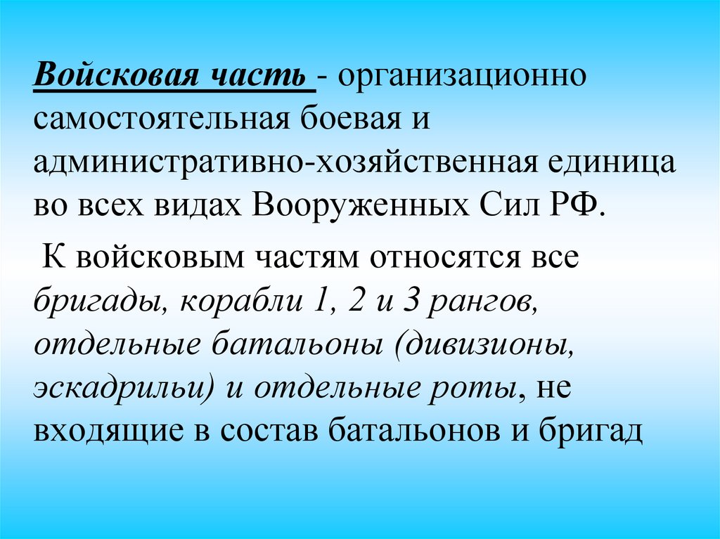 Войсковая часть - организационносамостоятельная боевая и