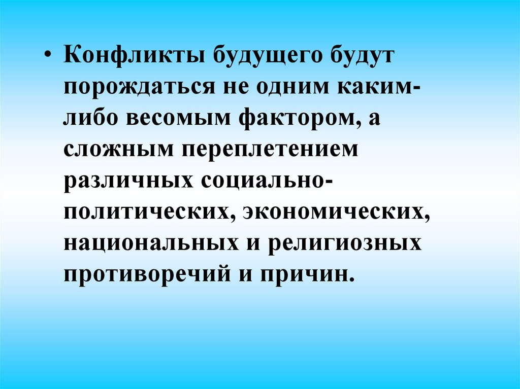 • В будущем основная угроза будетисходить не от регулярных армий разных