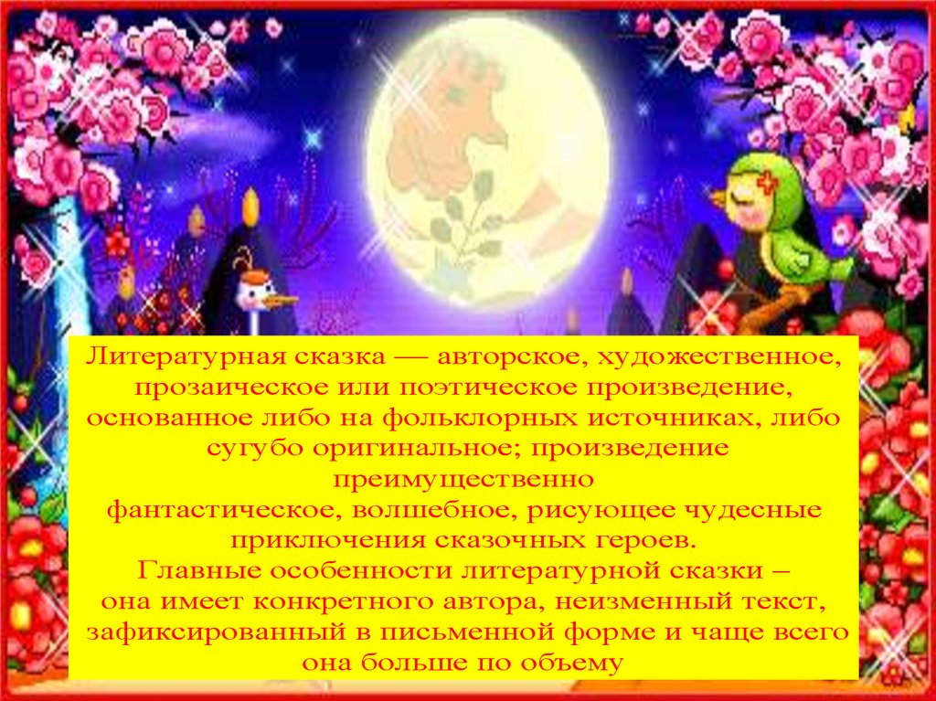 Литературная сказка — авторское, художественное,прозаическое или поэтическое произведение,