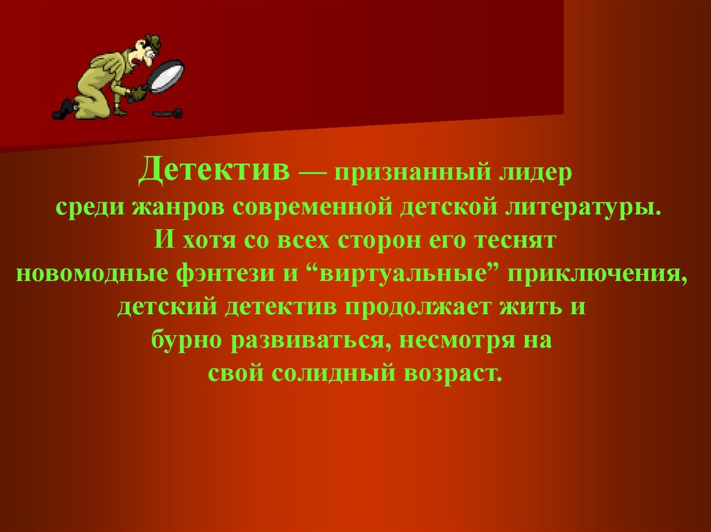 Детектив — признанный лидерсреди жанров современной детской литературы.
