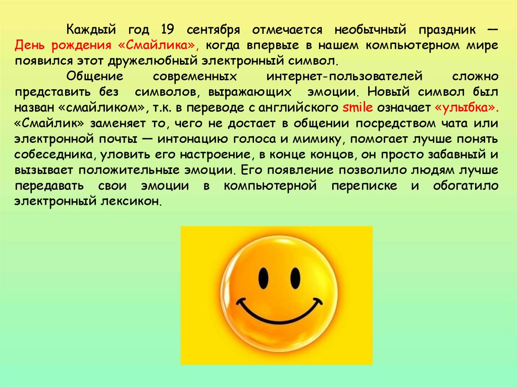 Каждый год 19 сентября отмечается необычный праздник —День рождения «Смайлика», когда впервые в нашем компьютерном мире