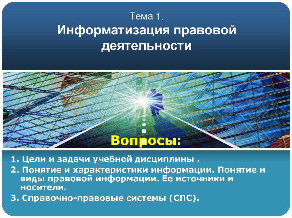 Вопросы:1. Цели и задачи учебной дисциплины .