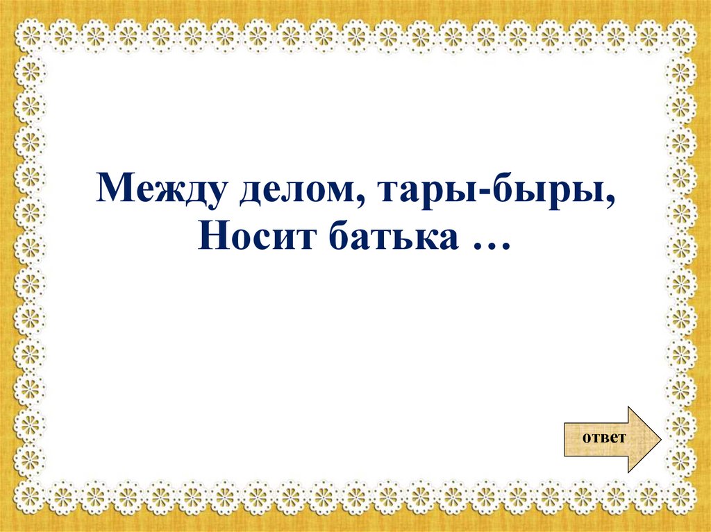 Между делом, тары-быры,Носит батька …