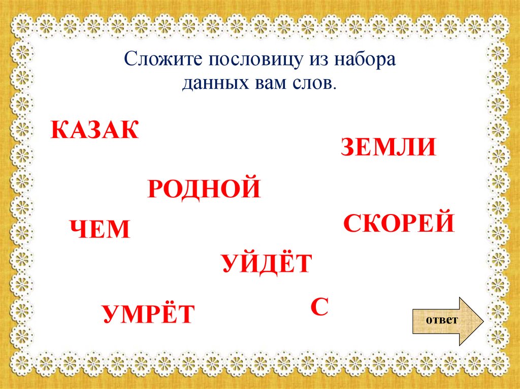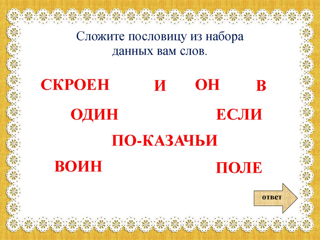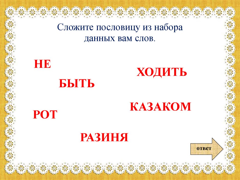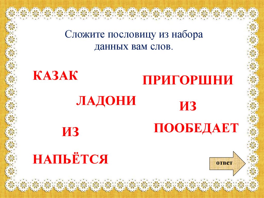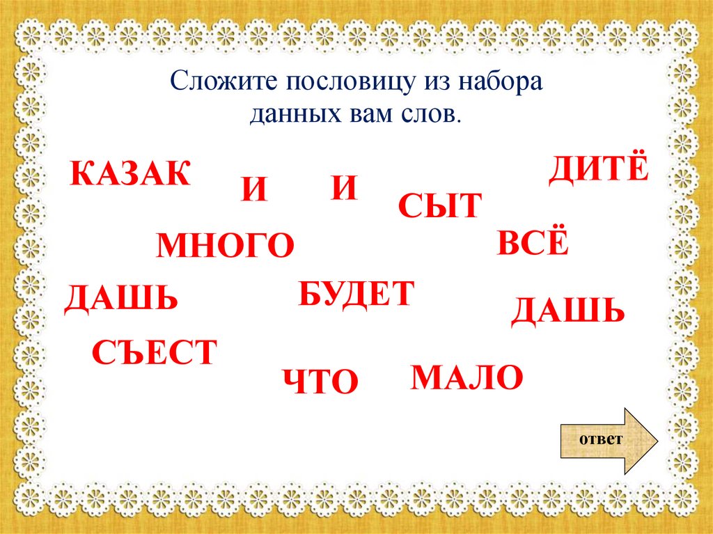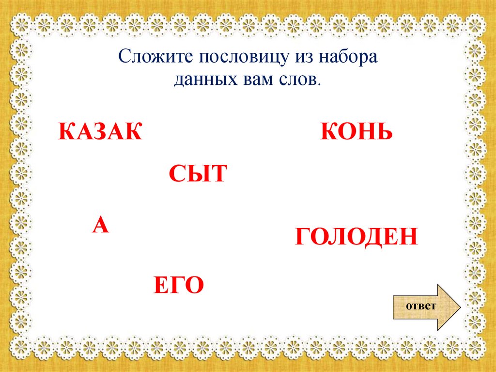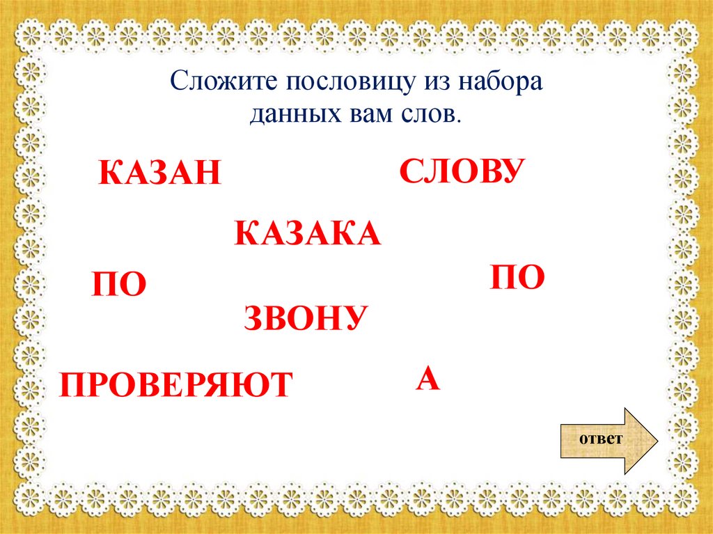 Сложите пословицу из набораданных вам слов.
