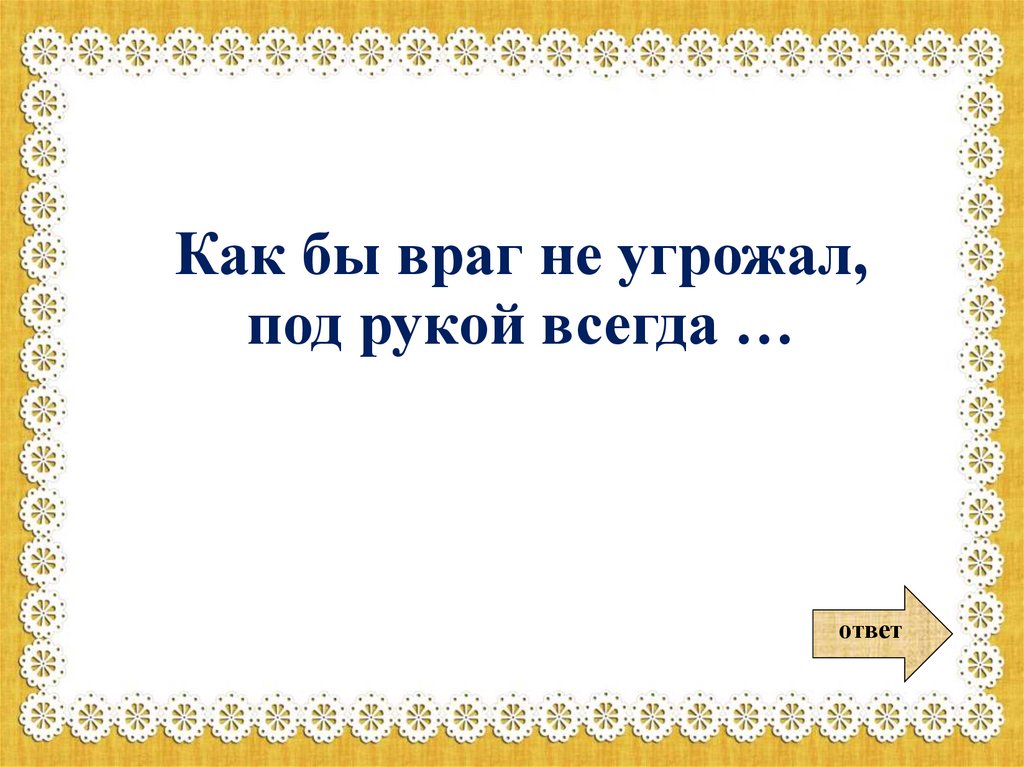 Как бы враг не угрожал,под рукой всегда …