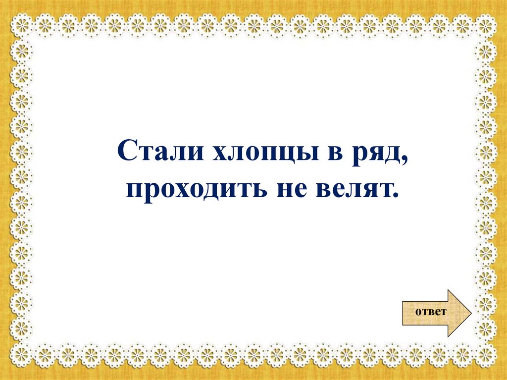 Стали хлопцы в ряд,проходить не велят.