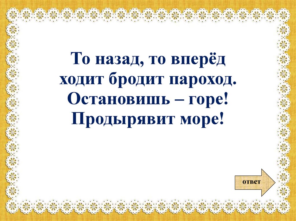 То назад, то вперёдходит бродит пароход.