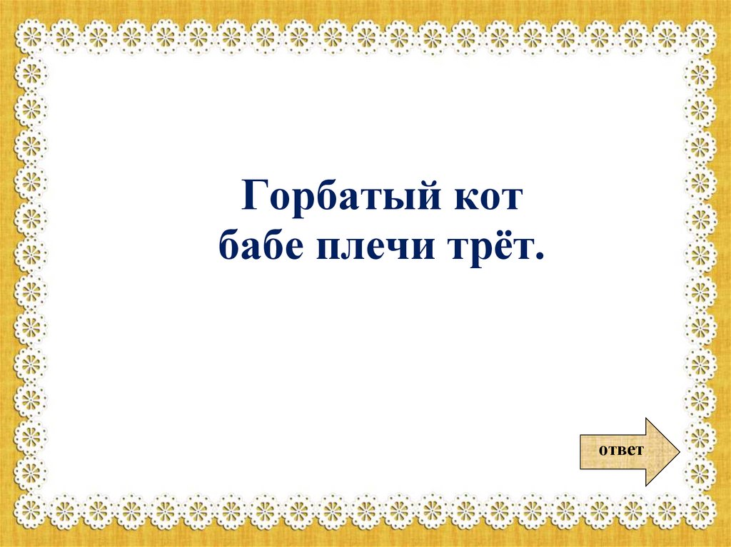 Горбатый котбабе плечи трёт.