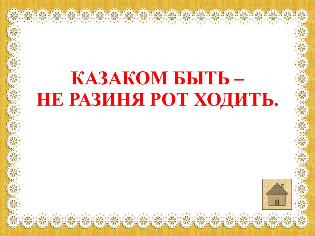 КАЗАКОМ БЫТЬ –НЕ РАЗИНЯ РОТ ХОДИТЬ.