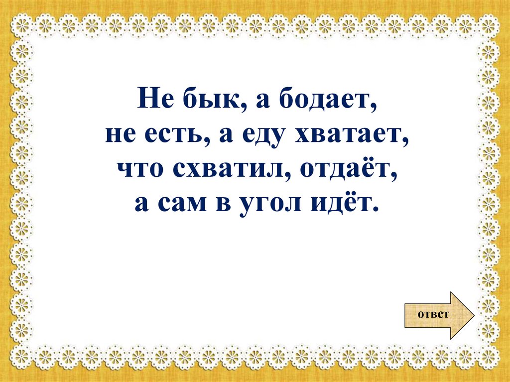 Не бык, а бодает,не есть, а еду хватает,