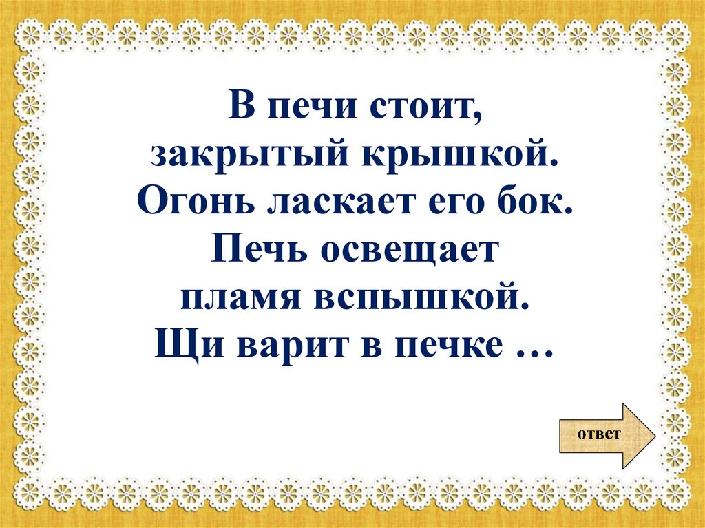 Щи варит в печке …