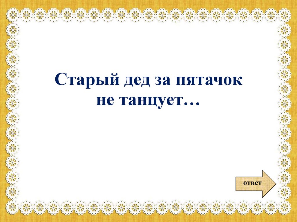 Старый дед за пятачокне танцует…