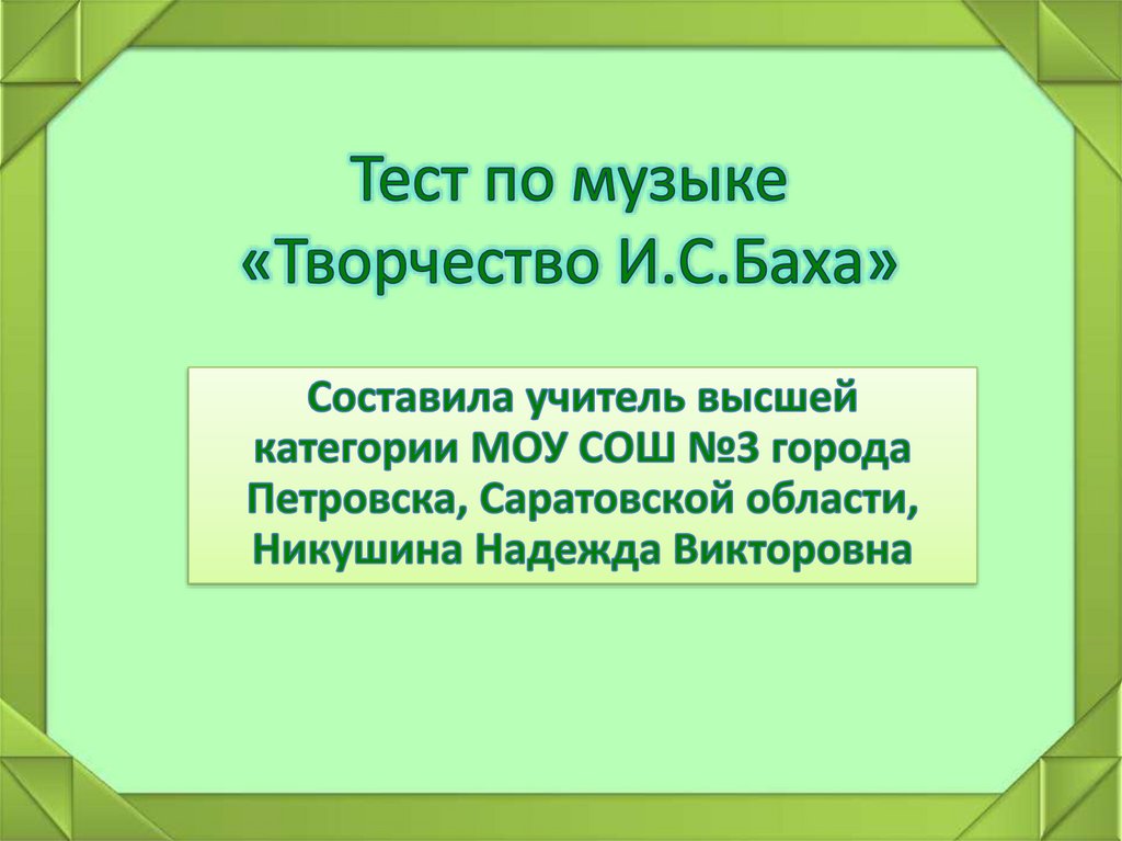 1. Тест по музыке «Творчество И.С.Баха»
