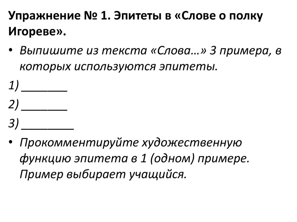 Упражнение № 1. Эпитеты в «Слове о полкуИгореве».