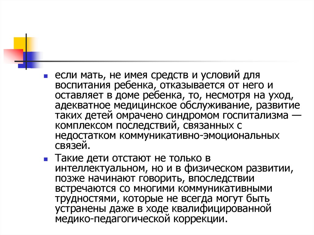 если мать, не имея средств и условий длявоспитания ребенка, отказывается от него и