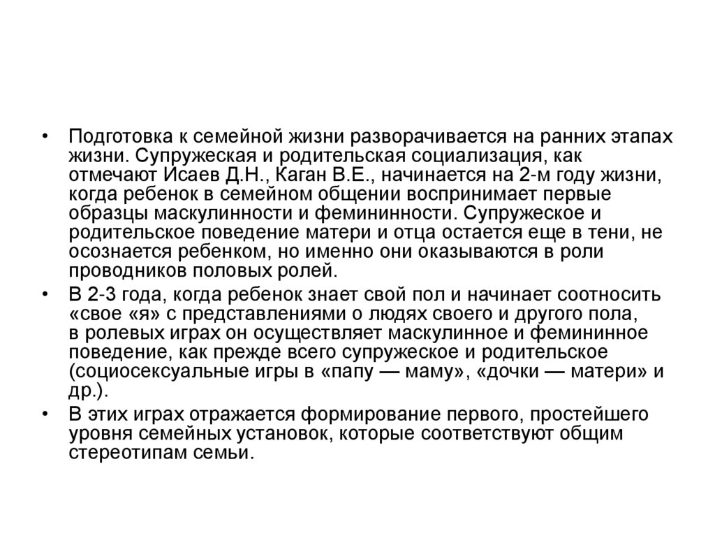 происходит осознание особенностей брачносемейных взаимоотношений, развитие