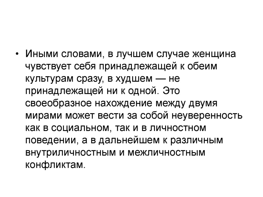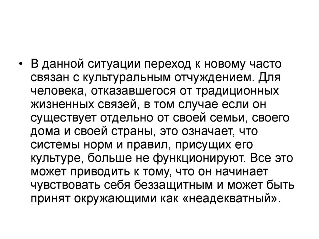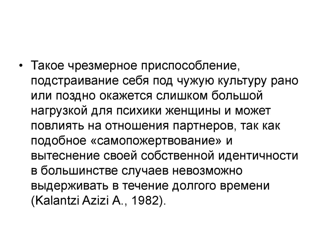 • Такое чрезмерное приспособление,подстраивание себя под чужую культуру рано