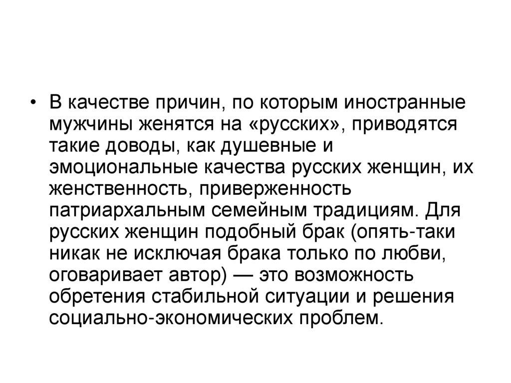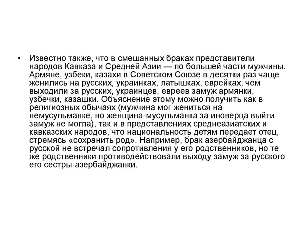 • Известно также, что в смешанных браках представителинародов Кавказа и Средней Азии — по большей части мужчины.