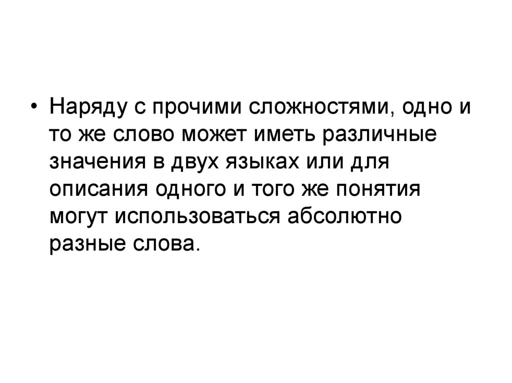 • Наряду с прочими сложностями, одно ито же слово может иметь различные
