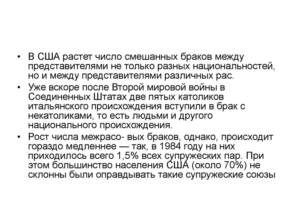 • В США растет число смешанных браков междупредставителями не только разных национальностей,
