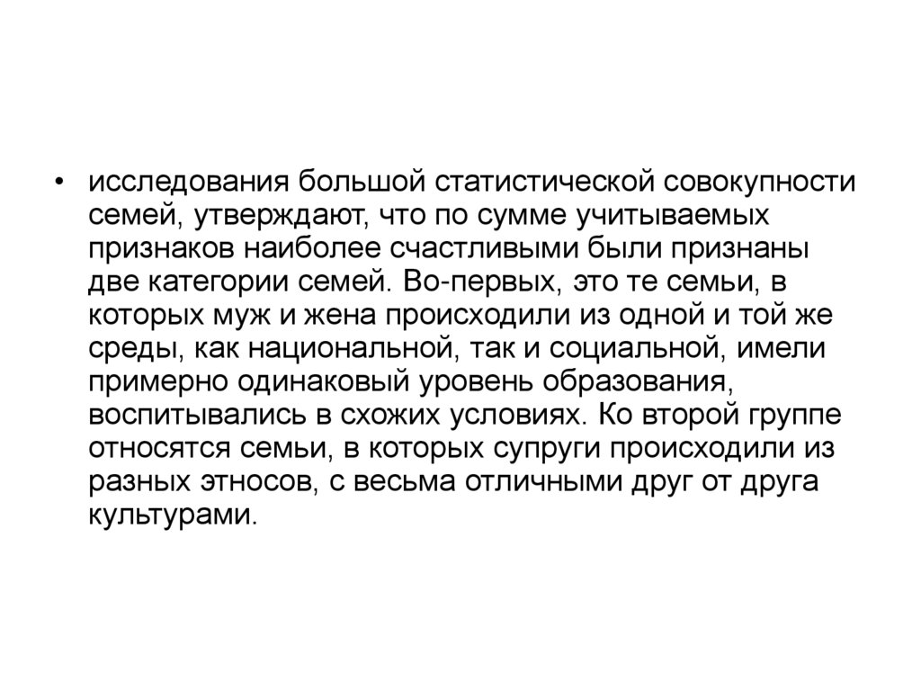 • исследования большой статистической совокупностисемей, утверждают, что по сумме учитываемых